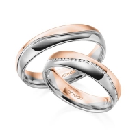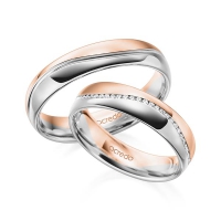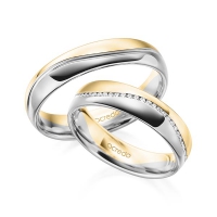 Paar Memoire-Trauringe/Eheringe von acredo in Gelbgold 585/- Weißgold 585/- Oberfläche: poliert mit zus. 0,145 ct. Brillant tw, si (Produkt 1 mit Steinbesatz, Produkt 2 ohne Steinbesatz)