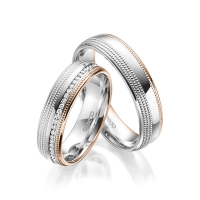 Paar Memoire-Trauringe/Eheringe von acredo in Graugold 585/- Rotgold 585/- Oberfläche: poliert mit zus. 0,295 ct. Brillant tw, si (Produkt 1 mit Steinbesatz, Produkt 2 ohne Steinbesatz)