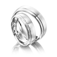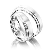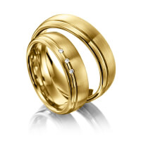 Paar Trauringe/Eheringe von acredo in Graugold 585/- Gelbgold 585/- Oberfläche: längsmatt, poliert mit zus. 0,03 ct. Brillant tw, vs (Produkt 1 mit Steinbesatz, Produkt 2 ohne Steinbesatz)