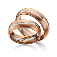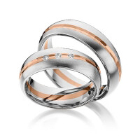 Paar Trauringe/Eheringe von 123GOLD in Graugold 585/- Roségold 585/- Oberfläche: längsmatt, poliert mit zus. 0,045 ct. Brillant tw, si (Produkt 1 mit Steinbesatz, Produkt 2 ohne Steinbesatz)