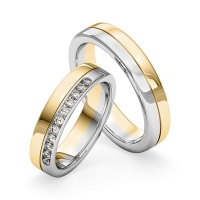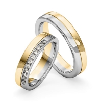 Paar Trauringe/Eheringe von Merii in Graugold 585/- Roségold 585/- Oberfläche: poliert mit zus. 0,275 ct. Brillant tw, si (Produkt 1 mit Steinbesatz, Produkt 2 ohne Steinbesatz)