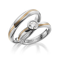 Paar Trauringe/Eheringe von acredo in Graugold 750/- Gelbgold 750/- Oberfläche: poliert mit 0,5 ct. Brillant r, if (Produkt 1 mit Steinbesatz, Produkt 2 ohne Steinbesatz)