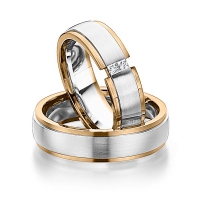 Paar Trauringe/Eheringe von 123GOLD in Graugold dunkel 585/- Rotgold 585/- Oberfläche: poliert, längsmatt mit zus. 0,08 ct. Prinzess-Diamant tw, si (Produkt 1 mit Steinbesatz, Produkt 2 ohne Steinbesatz)