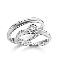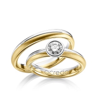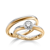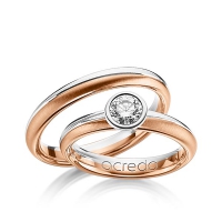 Paar Trauringe/Eheringe von acredo in Palladium 950/- Roségold 750/- Oberfläche: poliert, quermatt mit 0,5 ct. Brillant tw, si (Produkt 1 mit Steinbesatz, Produkt 2 ohne Steinbesatz)