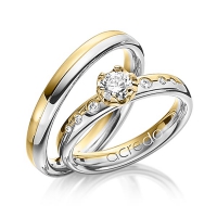 Paar Trauringe/Eheringe von acredo in Platin 950/- Gelbgold 750/- Oberfläche: poliert mit 0,4 ct. + zus. 0,1 ct. Brillant tw, vs (Produkt 1 mit Steinbesatz, Produkt 2 ohne Steinbesatz)