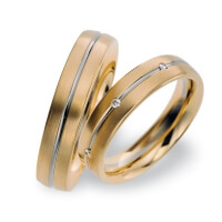 Paar Trauringe/Eheringe von acredo in Roségold 585/- Weißgold 585/- Oberfläche: längsmatt, poliert mit zus. 0,07 ct. Brillant tw, vs (Produkt 1 mit Steinbesatz, Produkt 2 ohne Steinbesatz)