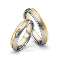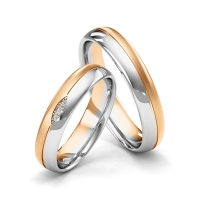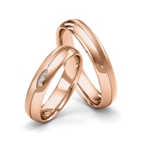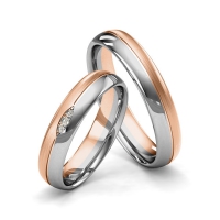 Paar Trauringe/Eheringe von Merii in Rotgold 585/- Graugold 585/- Oberfläche: längsmatt, poliert mit zus. 0,02 ct. Brillant tw, si (Produkt 1 mit Steinbesatz, Produkt 2 ohne Steinbesatz)