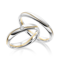 Paar Trauringe/Eheringe von acredo in Weißgold 585/- Gelbgold 585/- Oberfläche: poliert mit zus. 0,05 ct. Brillant tw, si (Produkt 1 mit Steinbesatz, Produkt 2 ohne Steinbesatz)