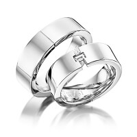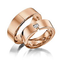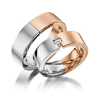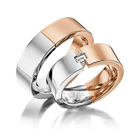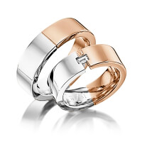 Paar Trauringe/Eheringe von 123GOLD in Weißgold 585/- Roségold 585/- Oberfläche: poliert mit zus. 0,15 ct. Baguette-Diamant tw, vs (Produkt 1 mit Steinbesatz, Produkt 2 ohne Steinbesatz)