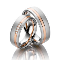 Paar Trauringe/Eheringe von acredo in Weißgold 585/- Rotgold 585/- Oberfläche: sandmatt mit zus. 0,05 ct. Brillant tw, vs (Produkt 1 mit Steinbesatz, Produkt 2 ohne Steinbesatz)