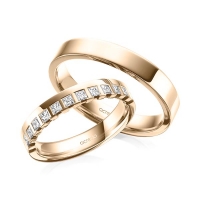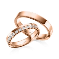 Paar Memoire-Trauringe/Eheringe von acredo in Roségold 585/- Oberfläche: poliert mit zus. 0,36 ct. tw, vs (Produkt 1 mit Steinbesatz, Produkt 2 ohne Steinbesatz)