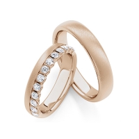 Paar Memoire-Trauringe/Eheringe von Steinberg in Rotgold 585/- Oberfläche: poliert, schrägmatt mit zus. 0,56 ct. tw, si (Produkt 1 mit Steinbesatz, Produkt 2 ohne Steinbesatz)