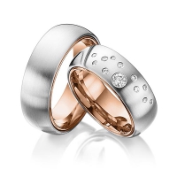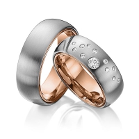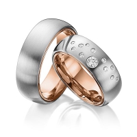 Paar Trauringe/Eheringe von 123GOLD in außen Roségold 585/- , innen Roségold 585/- Oberfläche: längsmatt, poliert mit zus. 0,235 ct. Brillant tw, si (Produkt 1 mit Steinbesatz, Produkt 2 ohne Steinbesatz)