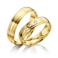Paar Trauringe/Eheringe in Gelbgold 375/- Oberfläche: längsmatt, poliert mit zus. 0,06 ct. Brillant tw, si (Produkt 1 mit Steinbesatz, Produkt 2 ohne Steinbesatz)