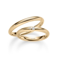 Paar Trauringe/Eheringe von acredo in Gelbgold 585/- Oberfläche: poliert mit zus. 0,035 ct. Prinzess-Diamant & Brillant tw, vs tw, si (Produkt 1 mit Steinbesatz, Produkt 2 ohne Steinbesatz)