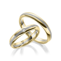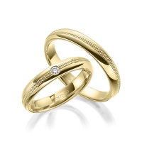 Paar Trauringe/Eheringe von acredo in Gelbgold 585/- Oberfläche: poliert mit zus. 0,05 ct. Brillant tw, si (Produkt 1 mit Steinbesatz, Produkt 2 ohne Steinbesatz)