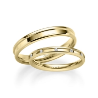 Paar Trauringe/Eheringe von acredo in Gelbgold 585/- Oberfläche: poliert mit zus. 0,11 ct. Brillant tw, si (Produkt 1 mit Steinbesatz, Produkt 2 ohne Steinbesatz)