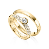 Paar Trauringe/Eheringe von acredo in Gelbgold 585/- Oberfläche: poliert mit zus. 0,61 ct. Brillant tw, si tw, vs (Produkt 1 mit Steinbesatz, Produkt 2 ohne Steinbesatz)