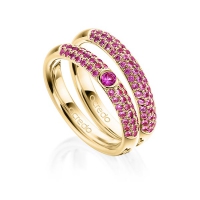 Paar Trauringe/Eheringe von acredo in Gelbgold 585/- Oberfläche: poliert mit zus. 0,808 ct. Brillant Saphir Pink (A 10) Saphir Hellpink (A 6)