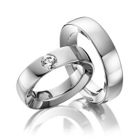 Paar Trauringe/Eheringe von 123GOLD in Graugold 585/- Oberfläche: poliert mit 0,5 ct. Brillant tw, si (Produkt 1 mit Steinbesatz, Produkt 2 ohne Steinbesatz)