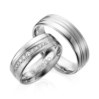 Paar Trauringe/Eheringe von acredo in Graugold 585/- Oberfläche: poliert, längsmatt mit zus. 0,146 ct. Brillant tw, si (Produkt 1 mit Steinbesatz, Produkt 2 ohne Steinbesatz)