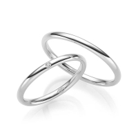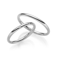Paar Trauringe/Eheringe in Platin 600/- Oberfläche: poliert mit zus. 0,01 ct. Brillant tw, si (Produkt 1 mit Steinbesatz, Produkt 2 ohne Steinbesatz)