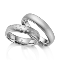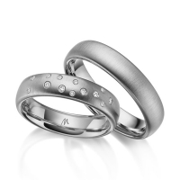 Paar Trauringe/Eheringe von Merii in Platin 600/- Oberfläche: quermatt mit zus. 0,09 ct. Brillant tw, si (Produkt 1 mit Steinbesatz, Produkt 2 ohne Steinbesatz)