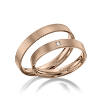 Paar Trauringe/Eheringe in Roségold 585/- Oberfläche: längsmatt mit zus. 0,015 ct. Brillant tw, si (Produkt 1 mit Steinbesatz, Produkt 2 ohne Steinbesatz)