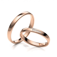 Paar Trauringe/Eheringe in Roségold 585/- Oberfläche: poliert mit zus. 0,025 ct. Brillant tw, si (Produkt 1 mit Steinbesatz, Produkt 2 ohne Steinbesatz)