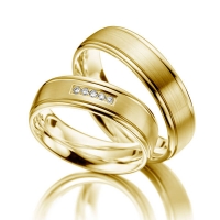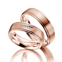 Paar Trauringe/Eheringe in Rotgold 375/- Oberfläche: poliert, längsmatt mit zus. 0,05 ct. Brillant tw, si (Produkt 1 mit Steinbesatz, Produkt 2 ohne Steinbesatz)
