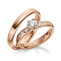 Paar Trauringe/Eheringe von acredo in Rotgold 585/- Oberfläche: poliert mit 0,4 ct. + zus. 0,1 ct. Brillant tw, vs (Produkt 1 mit Steinbesatz, Produkt 2 ohne Steinbesatz)