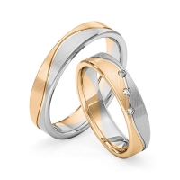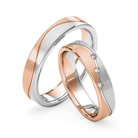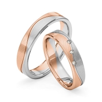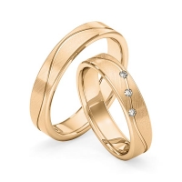Paar Trauringe/Eheringe von Merii in Rotgold 585/- Oberfläche: schrägmatt mit zus. 0,045 ct. Brillant tw, si (Produkt 1 mit Steinbesatz, Produkt 2 ohne Steinbesatz)