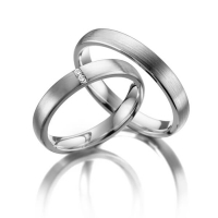 Paar Trauringe/Eheringe in Weißgold 375/- Oberfläche: längsmatt mit zus. 0,03 ct. Brillant tw, si (Produkt 1 mit Steinbesatz, Produkt 2 ohne Steinbesatz)