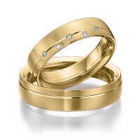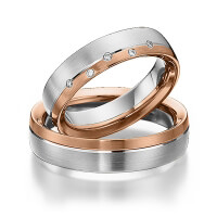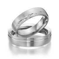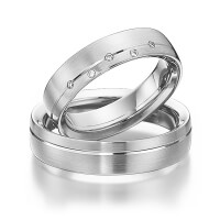 Paar Trauringe/Eheringe von 123GOLD in Weißgold 585/- Oberfläche: längsmatt mit zus. 0,04 ct. Brillant tw, si (Produkt 1 mit Steinbesatz, Produkt 2 ohne Steinbesatz)