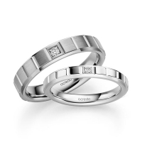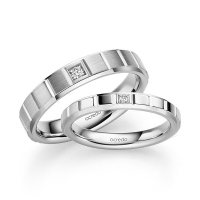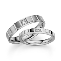Paar Trauringe/Eheringe von acredo in Weißgold 585/- Oberfläche: poliert mit zus. 0,05 ct. Brillant tw, si