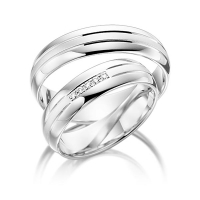Paar Trauringe/Eheringe von acredo in Weißgold 585/- Oberfläche: poliert, sandmatt mit zus. 0,05 ct. Brillant tw, si (Produkt 1 mit Steinbesatz, Produkt 2 ohne Steinbesatz)