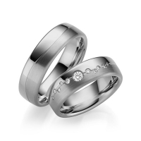 Paar Trauringe/Eheringe in Weißgold 585/- Oberfläche: poliert, längsmatt mit zus. 0,187 ct. Brillant tw, si (Produkt 1 mit Steinbesatz, Produkt 2 ohne Steinbesatz)