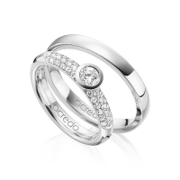 Paar Trauringe/Eheringe von acredo in Weißgold 585/- Oberfläche: poliert mit zus. 0,61 ct. Brillant tw, vs tw, si (Produkt 1 mit Steinbesatz, Produkt 2 ohne Steinbesatz)