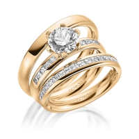 Set von acredo in außen Gelbgold 585/- , innen Gelbgold 585/- Oberfläche: poliert mit 1,5 ct. + zus. 0,84 ct. Prinzess-Diamant & Brillant tw, si tw, vs